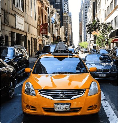 Taxi used for hire to transport passengers from one location to another. The term “cab” is short for “cabriolet,” which originally referred to a type of horse-drawn carriage.